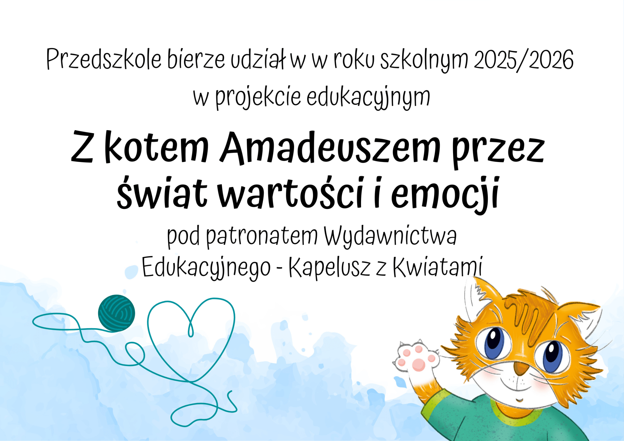 Nasze przedszkole bierze udział w projekcie edukacyjnym " Z Kotem Amadeuszem przez świat wartości i emocji".