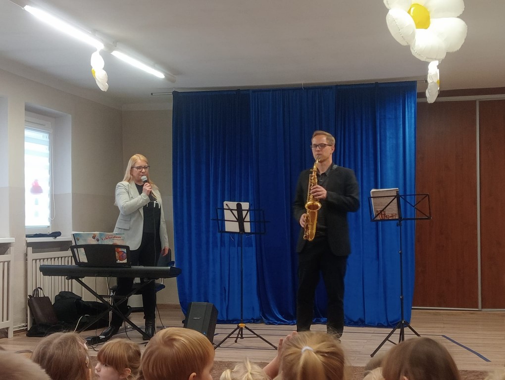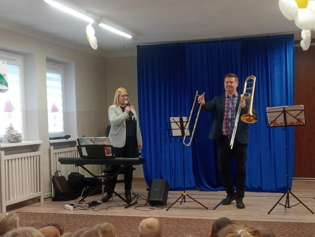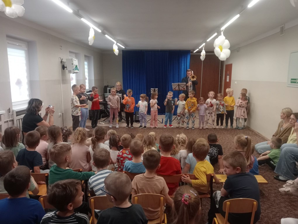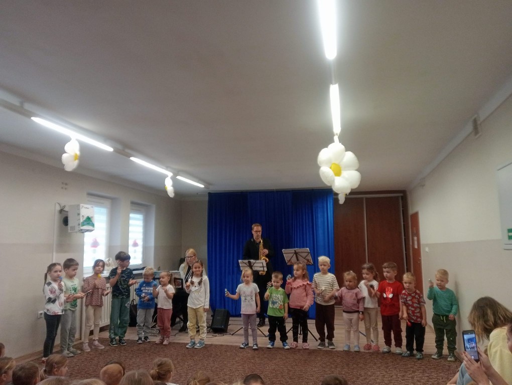 W pierwszy listopadowy poniedziałek nasze Przedszkolaki miały niezwykłe spotkanie z muzykami. Zaproszeni muzycy zaprezentowali: trąbkę, puzon i keyboard pokazali swoje instrumenty oraz zagrali przy akompaniamencie naszych milusińskich melodie z bajek Disneya. To był bardzo wesoły i ubogacajacy czas.