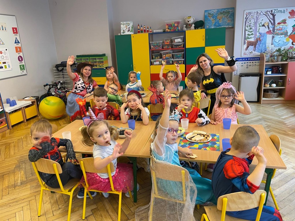 Karnawał to czas zabaw i balów, także dla najmłodszych. Kolorowe stroje, bajeczny wystrój i skoczna muzyka– w takiej atmosferze bawiły się dzieci 10 lutego podczas balu karnawałowego. Przedszkolaki z dumą prezentowały karnawałowe stroje. Dzieci przebrane były za bohaterów znanych bajek, w salach przedszkolnych można było spotkać wróżki, księżniczki, syrenki, motylki, piratów, strażaków, policjantów, Spider-Mana, Batmana, nie sposób zliczyć i wymienić tych wszystkich postaci. Rozpoznać dzieci było bardzo trudno. Wystrój sali wprowadził w radosny nastrój oraz zachęcał wszystkich do wesołej zabawy. Na twarzach wszystkich malował się uśmiech, który nie znikał mimo chwilowego zmęczenia. Po udanej zabawie dzieci zostały zaproszone na niezapomniany pokaz magii w wykonaniu Iluzjonisty, który pobudził zmysły oraz spontaniczną aktywność dzieci. Na zakończenie dzieci udały się na smakowity poczęstunek. Na końcu balu została ogłoszona królowa oraz król tegorocznego balu- Nadia oraz Patryk. Gratulujemy